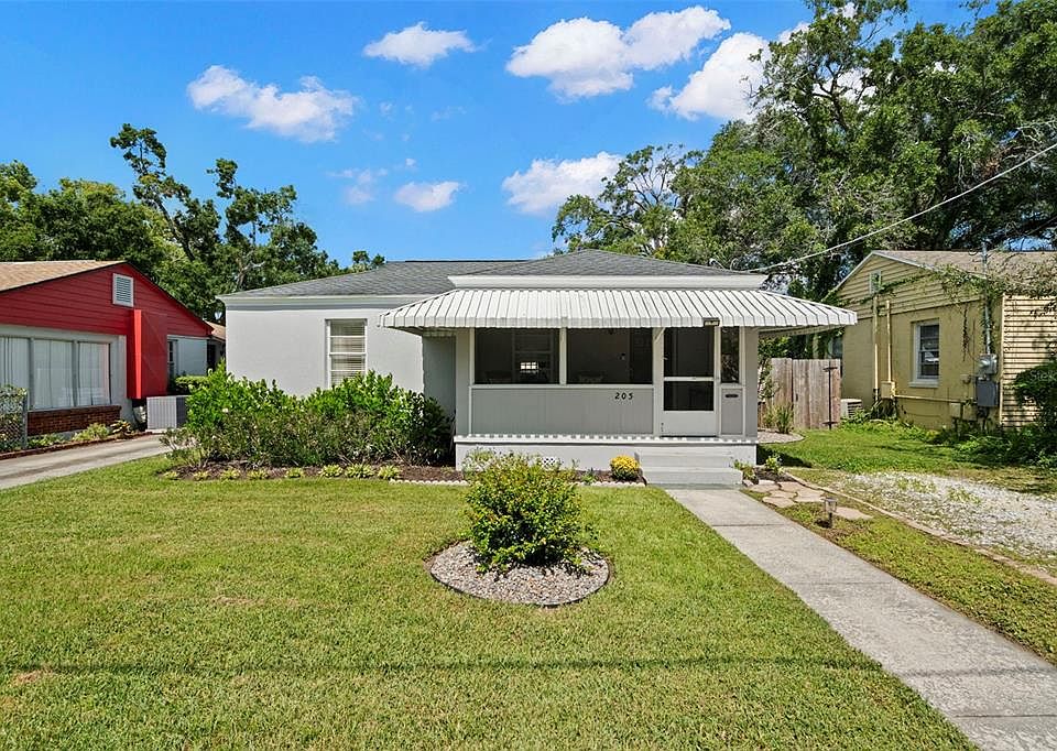 Move-in ready, come view this charming 1940s bungalow in the Seminole Heights Historic District, fully renovated in 2022! This 2BR/1BA home also includes a versatile bonus room +door-perfect for an office, reading nook, or yoga space. Updates include a new kitchen with solid wood cabinets, renovated bathroom, stained original hardwood floors, updated electrical/plumbing, and all new appliances plus washer/dryer (2022). Enjoy indoor/outdoor living on the covered front porch or in the spacious backyard with a fenced yard, professionally installed stone patio (2024), garden shed for extra storage, and irrigated raised beds. Walk to Rivercrest Park, coffee shops, and breweries—plus quick access to I-275, Armature Works and downtown. See Realtor Remarks. Schedule thru Showingtime.