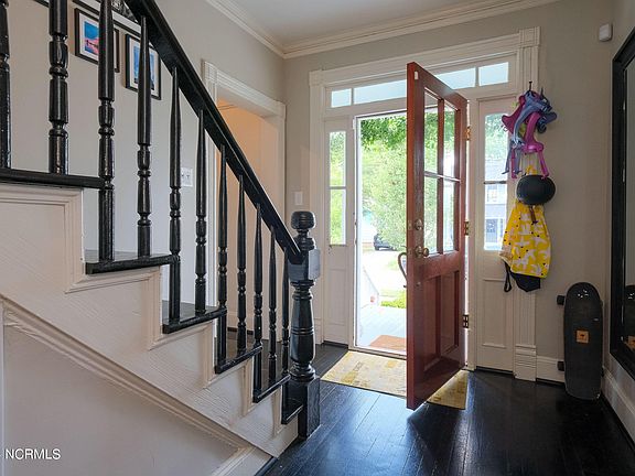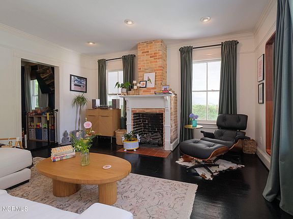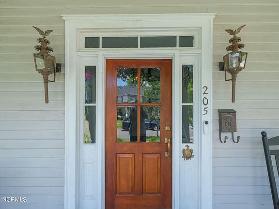 This handsome downtown Edenton home offers a classic center hall design, featuring double porches and immeasurable charm. The floor plan is a wonderful combination of a traditional layout that has been updated with wide cased openings to create a wonderful sense of openness found in newer homes. The plan affords comfortable living with a formal living or dining room, cozy den that opens to a stunning eat-in kitchen, and a bedroom on the main level. 2 spacious bedrooms and a bath are upstairs. Delightful porches grace both the front & back, and a large detached building in the fenced backyard is great as workshop or storage space. Enjoy this delightful combination of historic charm & modern updates within strolling distance of the waterfront and downtown!
