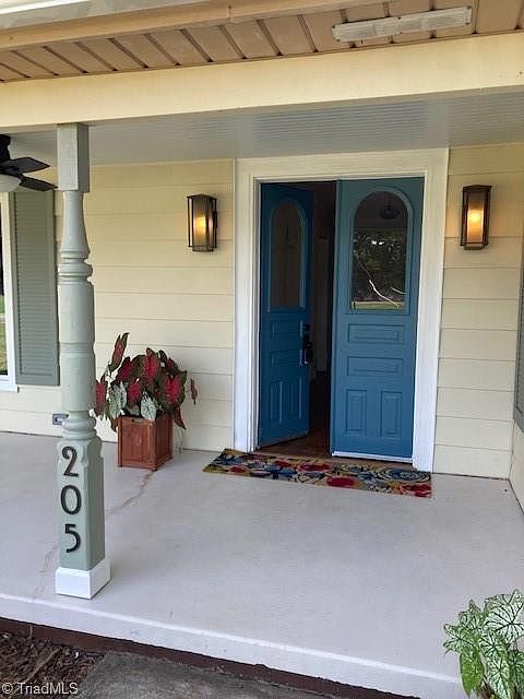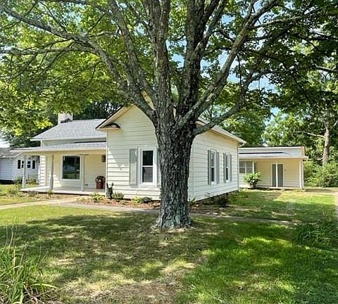 Totally remodeled historic house in downtown King on level one half acre with walnut and pecan trees! Walking distance to coffee shops, library, and downtown stores. Many original details remain including heartwood pine floors, interior hardwood doors and double front doors with curved glass windows. New wiring, plumbing, roof, gutters, vapor barrier, floor insulation, hot water heater, and kitchen appliances. High end electric heat with gas backup. Front porch plus side sun porch with two ceiling fans. Large room off breezeway could be used as studio, workshop or even additional bedroom. House is on the historic register c. 1900.