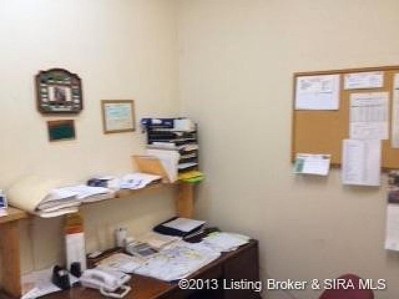2080 Sq.ft. building on .039 acre lot. Property only, not the business. Building has 2 offices and 2 garage bays for self storage/auto repair and detailing, with room for 2 more. Perfect for auto repair, plumbing, A/C, electrical, welding, machine shop and any other similar type business. New 26,000 BTU ac unit. 30+ parking spaces. Roof rubbered coated last year. Priced to sell! Listing agent has to accompany any showings, during business hours only. Nice location in downtown historic Corydon Indiana.