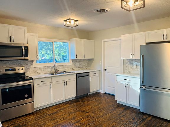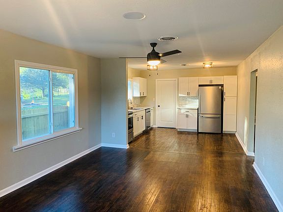 This Two bedroom One bath Bungalow screams Perfection when you walk into the Open floor plan, the Refinished Hardwood flooring, Brand New appliances, ALL New fixtures, New paint, New trim, NEW ROOF, New Guttering, NEW Central Heat and Air, ALL NEW Windows. NEW EVERYTHING!This Brilliantly Renovated Home even has wired Bluetooth speaker lighting in the bathroom and Bluetooth speakers in the living room. NEW Privacy Fenced back yard with New Utility Building. Come Home! Plus ALL NEW APPLIANCES including Refrigerator! WOW!
