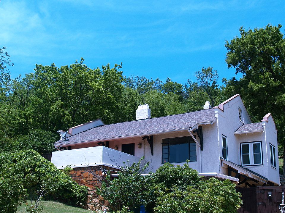 Hillside "Cliff Dweller" living on Historic Reservoir Hill. Truly unique property with incredible southern view-shed including Downtown skyline. 1930's Spanish stucco w/ Updated kitchen, full walk-in basement with office, Rec room and/or 3rd bdrm, mudroom & full bath. Multiple outdoor living areas, including a front deck, a private courtyard and backyard native stone patio with a fire pit and a wood-fired pizza oven. 5 minutes from Downtown Tulsa, Guthrie Green, Brady District. Must see!