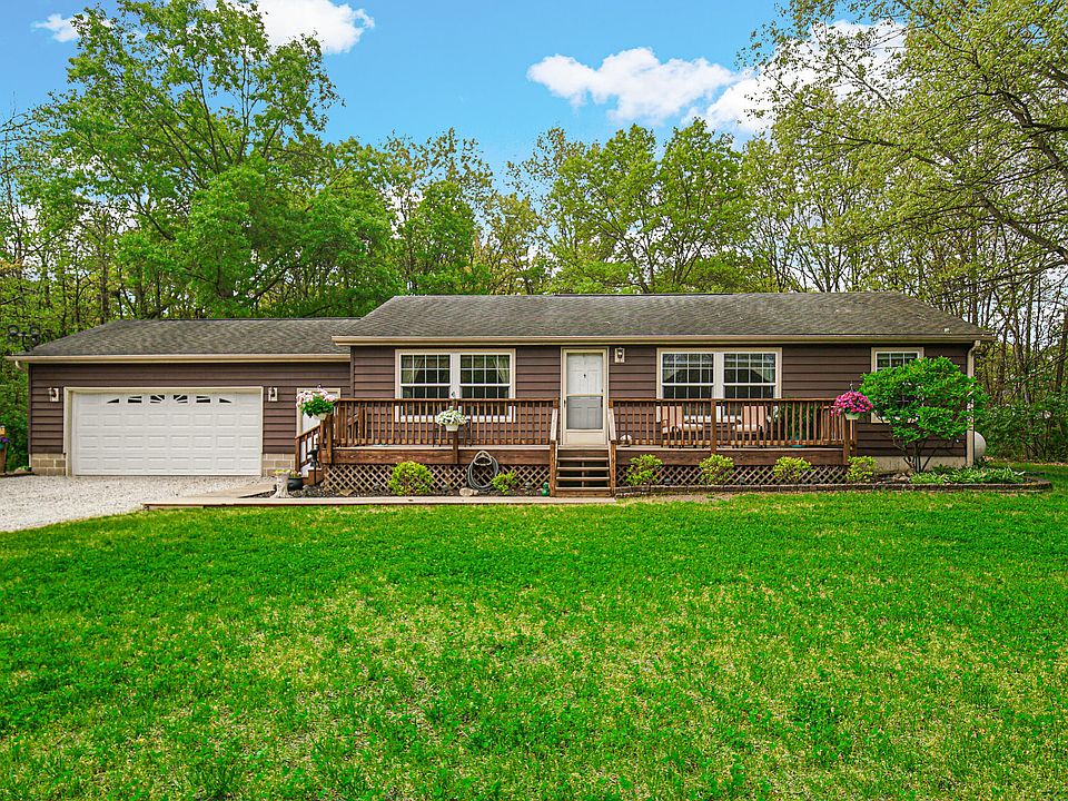 OHHhhhh boy - this one is going to be popular! As you drive down the wooded & private lane your final turn unfolds this 5 acre Oasis that awaits you. As imply gorgeous property tucked away w/mature trees surrounding it is a serene & peaceful backdrop. An amazingly well cared for home shows great inside & out from vaulted ceilings, 6 panel doors, open concept, kitchen/living area w/ loads of cabinetry & storage. Master suite w/double closets and a crazy smart access to the laundry plus a super cool kitchen island and side buffet great for entertaining or home office area. 2x6 const and never guess as a top of the line modular. It is spotless w/a FULL COMPLETE appliance package that'll include the washer and dryer + a second refrigerator and chest freezer in the garage. Open & Airy the large slider takes the living outside to you private deck. The fully insulated/heated 3+ gar is going to check a lot of boxes but wait till you see the 30x50 pole barn & on site RV hookup Incl separate septic drop & water complete w/a 30 amp plug-in for out-of-town guess or for yourself. It is a RARE find and for those who have it will certainly appreciate it! You can even roll it inside with 13-ft OH doors. Horses are welcome and sky's the limit in making this your own hobby farm. 200 amp service at the pole. Crawl has poured walls. Septic pumped '23 and won't be needed for quite some time since the owners are only here during the summer. The corners were staked if you wish to traverse the woods. There is a 2nd well at the pump house for lawn and garden or washing cars. Seller will also have available for purchase if needed a golf cart, log splitter and zero-turn mower. Super peaceful dead end location but wicked fast access back to the main roads for shopping, schools and local amenities. 30 minutes to Valparaiso and a super easy drive. For extra peace of mind, the seller is also providing a complimentary 1Yr home warranty from APHW as a gift to you at closing. You're gonna LOVE IT!