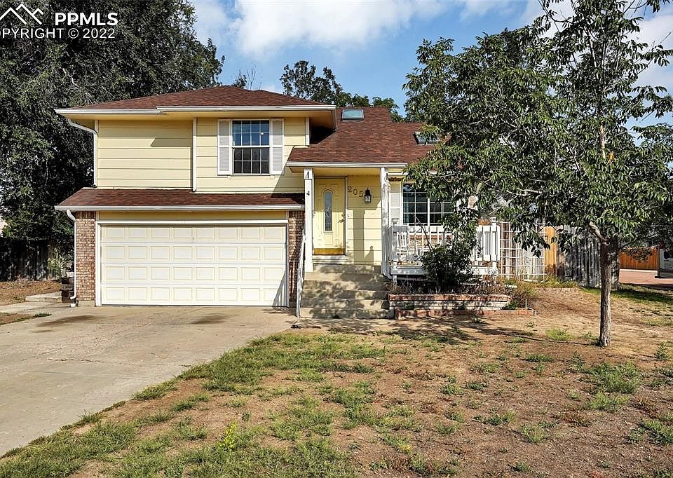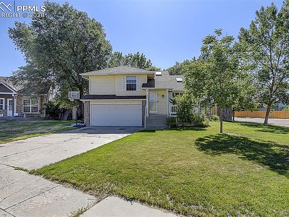 Come and see this beautiful 4 bed 3 bathroom home. Located just 10 minutes from Fort Carson on a corner lot. This 4 level home has ample amount of space for you and the family. The upper level has 3 bedrooms and 2 full bathrooms with walk in closets in each bedroom. 2 of the bedrooms have LVP flooring and one of the bathrooms has tile flooring. On the main level you will find a living room and kitchen with tile flooring and an island with a breakfast bar. The lower unit contains the family room with a fireplace, another bedroom in the basement and an extra room to use for storage or an office. large backyard with a concrete porch and a storage shed. Roof was replaced 2020 and AC was just replaced last month. The HOA includes a community pool during the summer. Close to Fort Carson, parks, shopping, and dining.