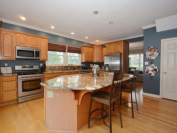 WOW! Gorgeous updated and upgraded home with lots of hardwood floors, granite countertops in enormous kitchen, stainless appliances, very large center island, today's colors throughout, large windows in all rooms, fantastic view of farm from Family Room, kitchen, and expansive deck, new carpeting, finished game room that's sure to please any man-cave dwellers, master ensuite with sitting room, large H&H walk-in closets, oversize 2 car garage, and fab large level yard and level entry, cute outdoor shed. Walnut Ridge is a well-thought out development with spacious yards, open spaces, well maintained homes.