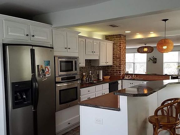 Duplex located on Corner of First and Walnut Street. Upper Unit Large 2 BR/2BA Beach apartment upstairs unit (1500 sq ft) with 1 car garage, office area off of kitchen, Florida room off master bedroom & large private upper deck area, just 5 houses off the BEACH, 3 blocks to Beaches Town Center shopping & restaurants. Wood floors, kitchen island, washer & dryer in unit. Upper unit of duplex with 2 parking spaces. Shared fenced back yard area. Well behaved pets considered with pet deposit. Lots of storage in walk-in attic & garage area. No Smoking. $100 mth for water/sewer to city of Neptune Beach + Electric. Lower Unit Completely renovated in 2021 with new kitchen cabinets, quartz countertops, backsplash, and appliances. All new LVP flooring throughout, and French Doors leading to under roof back patio space.