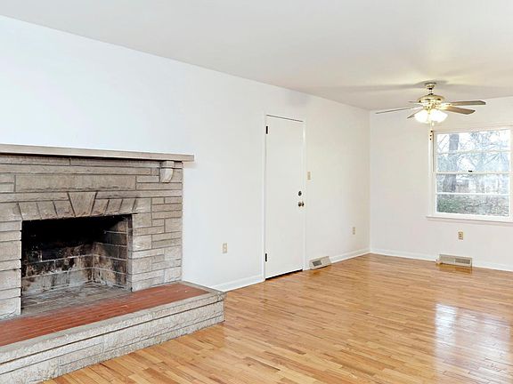 Terrific all brick ranch home on full unfinished basement on a very large tree shaded lot in a great location. Enter from entry foyer into a very large living area with gorgeous newly refinished real hardwood floors and a large masonry fireplace. Lots of natural light to enjoy. No carpet here! Hardwood, laminate and vinyl flooring. Three spacious bedrooms, 1.5 baths. Very large attached garage (23 X 24 = 573 S.F.) with entry door to backyard. Loads of expansion space in full basement. Basement has some drywall, electric installed and duct work for heat & air. Large lot with trees and a chain link fenced rear yard. Conveniently located for schools, churches and shopping.