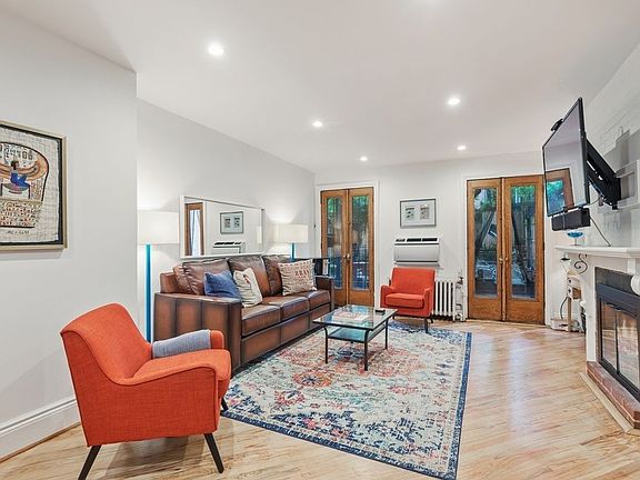 OPEN HOUSE BY APPOINTMENT ONLY. Please email the seller's agent for an appointment. Sorry, no access can be given without a previously scheduled appointment. Offering 1,150 square feet of interior space, a private entrance facing Ft. Greene Park, plus a 575 square foot private outdoor garden, this just-renovated, spacious two-bedroom two-bath apartment has great proportions and wonderful detail throughout. With an ideal location at the southern end of Washington Park, directly across the street from Fort Greene Park and the weekend farmers' market, the apartment is located in a stunning five-story extra-wide landmarked brownstone. An entry foyer, complete with a coat closet, welcomes you into the home. Down the hall, framed by original chair-rail and baseboard molding, you'll find the open living space. The large living area, which features a WOOD-BURNING fireplace, offers plenty of room for dining and looks onto the verdant garden through two classic French doors. The kitchen features all new stainless steel appliances, including a full-size dishwasher, quartz countertops, and abundant counter and storage space. Through beautifully carved antique mahogany doors is the large master bedroom with en suite full bath, original ceiling moldings and gorgeous hardwood floors with walnut inlay. Two arched windows bring in lovely afternoon light, while two roomy closets outfitted with the ELFA system - one discreetly hidden behind a sliding barn door - provide great storage. The master bath was just renovated with a walk-in shower, marble tile, and chrome fixtures. Currently used as a nursery, the second bedroom easily fits a queen-sized bed and looks out a large window at the serene garden. The main bath has been similarly renovated to the master bath with marble tile and modern finishes and fixtures. Throughout the apartment you'll find lovely hardwood floors, high ceilings, recessed lights and an in-unit washer and dryer. In the heart of Fort Greene, just a short distance to multiple subway lines and around the corner from all of the wonderful businesses on Dekalb, the location cannot be beat. Pet friendly too with low maintenance!