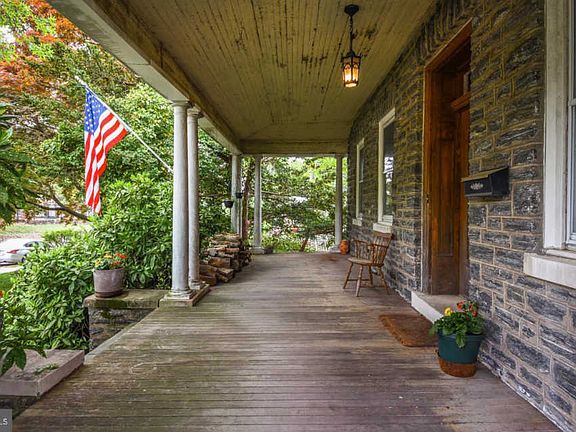 Three story stone home in the highly desirable Jenkintown neighborhood.Much of the home's original architectural detail and charm are what makes this property beautiful. Hardwood floors throughout from the formal living room all the way to the kitchen. Main level has large formal living room with brick fireplace, hardwood floors w/ inlay which continue into the formal dining room. The eat in kitchen has plenty of cabinet and counter space, stainless steel appliances with exit to rear deck. There is a full bath located on the main level as well as a den. Walk up to the second floor and you will find 4 large bedrooms and hall bath. There is a room which could be turned into a 5th bedroom but is currently being used as a closet. The laundry room is conveniently located on this floor with door leading out to balcony overlooking the rear yard. The 3rd floor features living room, bedroom, full bath and small kitchen area (currently not in use) Zoned for duplex or could be used an in-law suite. Large private rear yard, 3 car detached garage with a large loft above, front porch, rear deck and balcony. A must see! Schedule your appointment today!!
