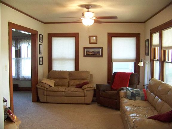 1 1/2 story home filled with character and charm! Inviting covered front porch welcomes you to this 4 bedroom, 1 1/2 bath home. Main floor features living room, formal dining room, large eat-in kitchen, 2 bedrooms and full bath. Upstairs has 2 bedrooms and half bath. Lower level family room/game room. Brand new efficient furnace and central air. New roof. 30 x 24 insulated 2-car detached garage with new steel roof. Large fenced backyard has a nice covered deck and garden shed included.