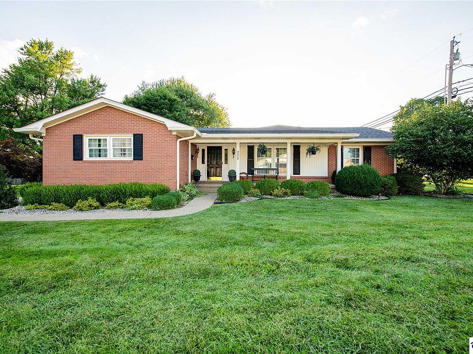 You must see this gem in the heart of Elizabethtown. The character and pride of ownership is everywhere you look. From the front you enter the wide foyer, to the formal living and dining room. Most rooms on the main have custom crown, some rooms have pocket doors, and there are cute wood blinds everywhere. The great room and kitchen have wood flooring, there is a beautiful gas fireplace that is a perfect place to gather for family time or just to gaze out the patio doors to a lovely, landscaped lawn. The partially finished basement is complete with a full kitchen, eat in area, family room, full bath, a room that was used as a bedroom at one time (does not have egress windows) a playroom and a sizeable laundry room with a sink. The outside is just as pretty. The extended lawn with the huge 30x32 brick garage, covered 17x14 patio, beautiful flower beds, concrete edging around the trees is just small part of what makes this home even more desirable. Schedule your tour today!