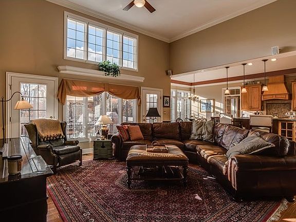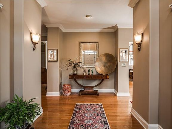 Stately 4 bedroom 4 and 1/2 Bathroom home featuring first floor master suite. Dramatic 2 story entry with hardwood floors Chandelier and crown molding. The first floor master suite boasts 2 walk in closets 2 vanities, whirlpool tub, shower along with trey ceiling. The open floor plan with the kitchen and family room with 15 ft ceilings gas fireplace, hardwood floors, french doors leading to the tiered deck, breakfast room, kitchen with custom cabinetry, granite stainless steel appliances with double oven, 5 burner cooktop, microwave , dishwasher and island. The formal dining room and formal living room include sconces, fabulous chandelier, crown molding and more! Three additional bedrooms upstairs and two additional bathrooms including bonus area off bedroom. Expansive basement with abundance of windows and doors leading to a fabulous back yard fenced and private with mature landscaping.