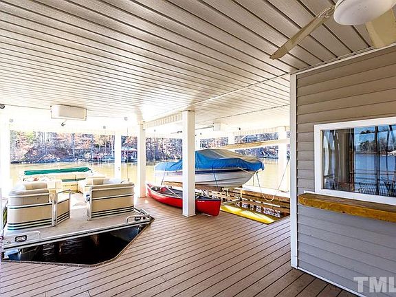 Gentle slope on Hyco Lake with deep water. Large 2 slip boat house with a screened in deck plus a gazebo. Large screened in deck on lakeside of house with excellent water views. Open living area with a stone FP with large patio door for awesome views. Each bedroom has it's own bathroom. Loft area for extra guest and good views of the lake. New water heater. Appl including washer/dryer convey. Large storage area under deck plus lighted crawl space. Nicely paved roads!