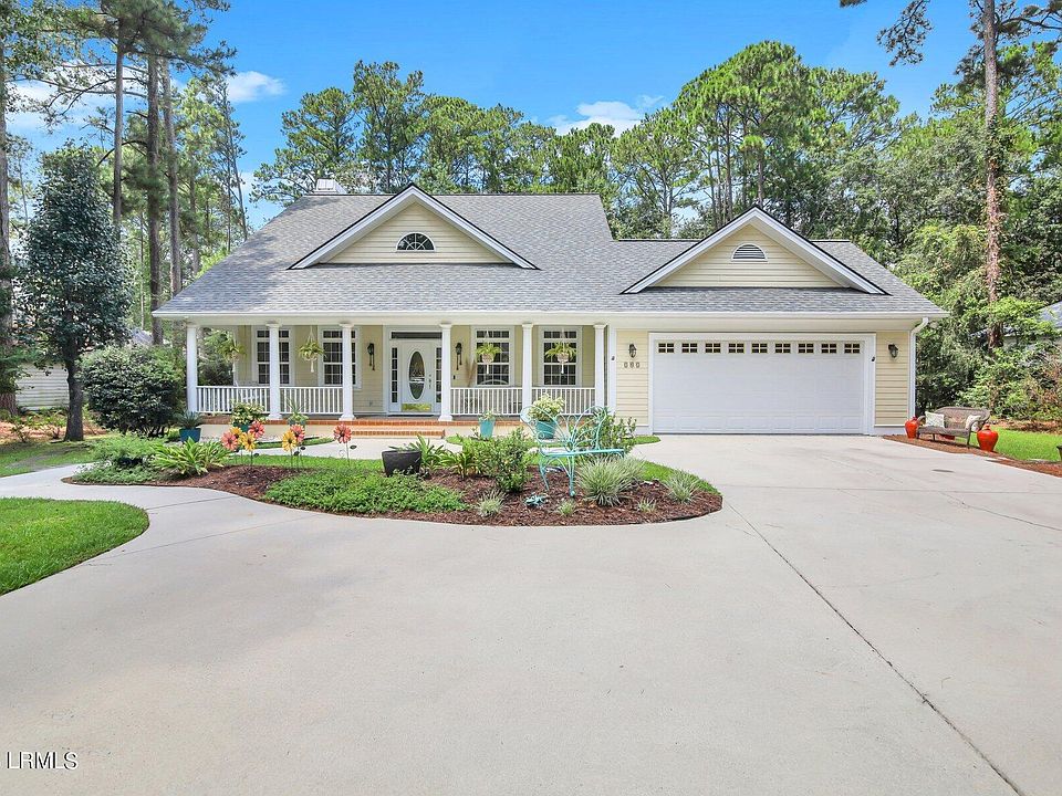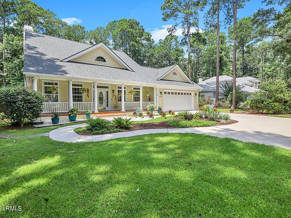 Embrace this One-story 3 bedroom, 3 bath home featuring 2 master bedrooms on a beautiful private wooded lot located in Rose Hill. This home has a large dining room for all your entertainment needs, many architectural features including sky lights, bull nose corners, wooden floors, cathedral ceilings and transoms in every entry way. The back yard is completely private. Enjoy a wonderful lowcountry evening from the screened in back porch overlooking the fire pit or swinging on the front porch with an amazing view of the landscape. This wonderful home gained a new roof in 2021 and new hot water heater in 2020.