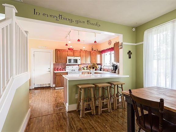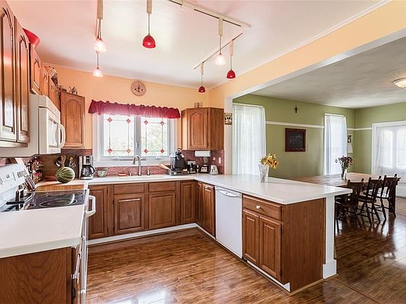 Beautiful farmhouse/colonial on secondary road only 5 miles from Eastview mall with 2 apartment zoning. Larger unit 3BR, 2 1/2BA & smaller has 2BR, 2full bath. 1st fl. laundry, both units. Many updates including kitchen w/Corian counters & laminated flooring for easy clean. New bathroom in the smaller unit & all bathroom fans replaced. Tilt in windows within past 10 years. Larger unit has central air & propane stove. Tons of landscaping with ornamental gardens & trees, weeping cherry, crab apple, Cleveland pear & blue spruce. New black top driveway in 2016 & sealed in 2017. 48x32 polebarn with concrete floor is less than 10 years old and is rented out. $60/bay and 4 bays. Renters provide proof of insurance. Over $70,000 in improvements since sellers purchased in 2014.