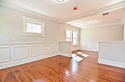 • Din Dscrp: Flooring - Hardwood, Open Floor Plan, Wainscoting, Main Level, Crown Molding, Lighting - Overhead