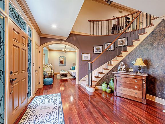 WOW.... This very well maintained stunning all brick home in the Development of Ironwood and the community of Southpointe. You walk into Brazilian Red wood flooring throughout the first floor, large dining room for the whole family to have plenty of space to gather. Lovely sitting area/ reading room or a formal living rm space. First floor flex space for either a second primary bedroom with a full upscale Bathrm. Open concept from kitchen to to family room to the amazing walk out covered porch. Sub zero refrigerator and stove. Heated driveway such a perk in the winter months just melts away the snow or Ice. Private Fenced in back yard with Three tiered waterfall into a heated pond. All landscaping and outside is maintained yearly. All hvac and AC etc is services on a regular basis.HWT 2021. This impeccable home is a MUST SEE.