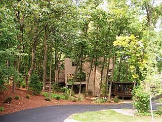 Unique contemporary nestled on a 1 acre partially wooded lot. If you are looking for something other than a cookie cutter house with a puny back yard check this one out. This home features dramatic wooded views from most rooms, over 3000 sq. ft, a remodeled kitchen with granite tops, hickory cabinets, stainless build in appliances, California Closet design pantry, 2 story great room with a wall of windows, master suite with beautiful cabinetry, ceramic and glass block shower with dual heads, air jetted tub, towel warmer, and huge walk in closet. Downstairs there is a comfortable family room, office area, music room and exit to the large covered deck area and 2.5 car garage. In addition separate from the main living space is a 4th bedroom, office or gym area and large storage space. This home is in excellent condition with a new roof with warranty, fresh stain, in ground sprinkler system, security system, reverse osmosis system and much much more. Check out the pictures and call today!