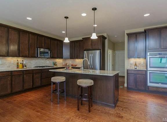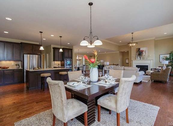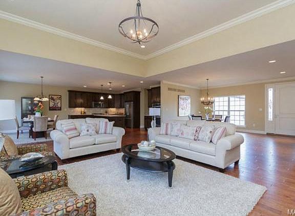 Gorgeous, completed inventory home in the highly desirable Wyndgate Oaks community. This 4 bedroom, 2.5 bath, 2,700 square foot ranch has an open floor plan, stunning brick and stone facade, a 3 car side entry garage and backs to thick trees on an intimate .4 acre cul-de-sac home site. Features include 12 foot tall ceilings in the Great Room with 9 foot tall ceilings throughout, gas fireplace, hardwood floors in main living area, custom cabinetry, granite countertops, stainless steel appliances, double oven, gas cooktop, Iron spindles, custom millwork, crown molding, recessed can lights, Luxury Master Suite, soaking tub and separate shower, designer 2 panel doors, professional landscape, irrigation system, architectural shingles, enlarged patio and more. Wyndgate Oaks is an amenity-packed neighborhood offering residents over 50 acres of wooded common ground, a pool, bathhouse, parks, a sports court, a 3 acre lake and trails for walking and biking. This fantastic location has an intimate feel yet is close to the many shops, restaurants and recreation near Hwy N & 40 and is a short commute to Chesterfield Valley.