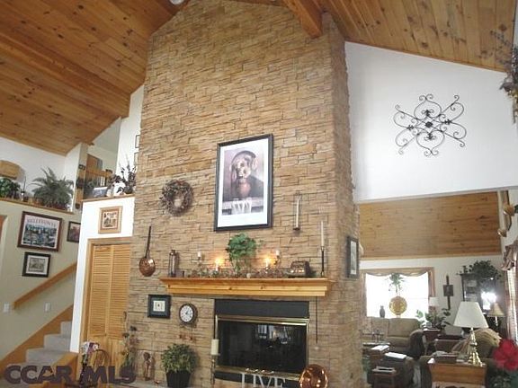 Situated on a pristine lot this gorgeous custom built home has so much to offer. 25' Tounge and Grove ceiling, two sided gas fireplace that can be viewed from the Dining Area and the Living room with a 2 story stone fireplace. Master bedroom suite includes loft type media room looking down to the living room, dressing room, laundry and bath. 2/12 car attached garage with access to the basement. 8'x 90' of covered porch with 3 ceiling fans and a outdoor kitchen with SS exhaust hood. Enjoy the stream flowing right off the porch. Also a 30'x40' detached workshop that is a hobbyist dream with all the goodies including exhaust system, water, sewer, a separate sub panel, 2 10' garage doors. Heated with propane and well insulated. Call today to see this truly unique property with so much to offer.