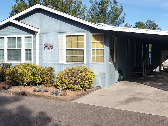 2 x 2 Cavco unit. Roof is 1 year new. Open floor plan, all appliances stay & some furniture. Smoker once lived in home. Patio in front recently stained & enclosed area for a pet.  Pest Inspection done and work completed 2024.  Home  ready for move in and for your personal touch!  Shady spot  on side with room for Fido. Open floor plan with 1340 sq feet.   Gas stove & gas furnace. Pine Shadows is a 55 plus community with access to 2 pools, 2 recreation centers, pickleball courts & many fun activities. Close to shopping, hospital , medical & Old Town Cottonwood. Great area for both active or quiet seniors Make new friends and enjoy all this community has to offer at a very affordable price. Leased Land , 55 plus park. Taxes under 250 a year. Park approval required.  Lending available