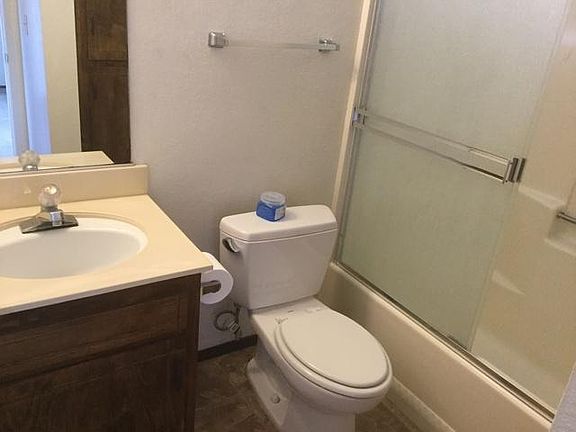 Nice, clean duplex with new flooring, designated parking space, outside storage locked closet. On premise coin-op laundry. Water/sewer, trash & gardener included. Month to month rental. Water, sewer, trash and gardener included. No pet.