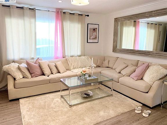 MUST SEE! Cozy upgraded condo with all modern conveniences. This condo feels like home with an attached garage. Completely remodeled kitchen, solid stone counter top with a breakfast bar. New laminate flooring throughout the residence. Private side yard, next to dining room. Dual pane windows, in addition to new French Door - double paned/louvered. 2 fully remodeled bathrooms with solid stone counters, and tiled floors. Large spacious closets. Crown molding, Barn Door, new appliances, recessed lighting, Shiplap ceilings in bedrooms. Quick access for commuters to 92/880 connects to Silicon Valley or San Francisco.St. Rose ,Kaiser Hospital,Chabot college and southmall.