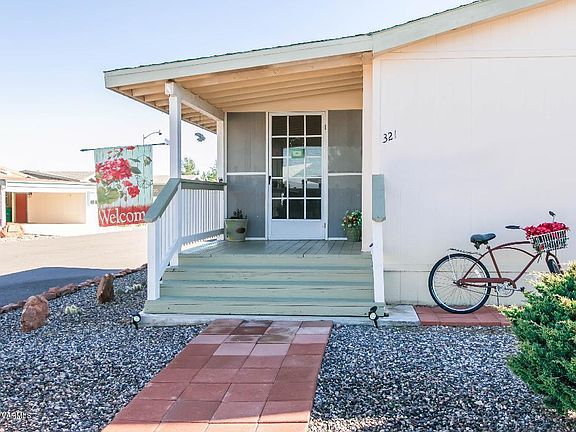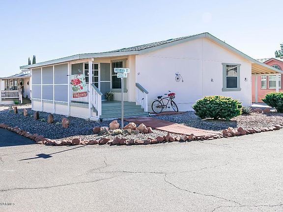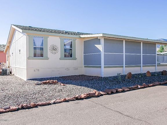 In a 55 plus community with lot rent of 603.04 Includes: Sewer & Weekly Trash pickup1999 Cavco 1408 sq. ft. New Roof this year Open Floor plan Split floor planLot #321 Located on a low maintenance lotThis home has a porch with great view . Sedona and Mingus Mountain .The home has with a carport , shed Move in ready appliances included