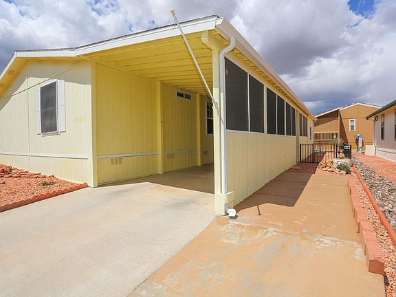 Well cared for move-in ready beautiful home. This bright and happy house has 3 bedrooms and 2 bathrooms, carport and shed. Large screened in porch to enjoy the warm Arizona weather. New washing machine, refrigerator , top-down bottom-up pleated shade window coverings, and dog run. Tile and laminate flooring throughout. The home has also recently been re-leveled. $555.71 Lot Rent w/ Trash, sewer, and amenities. 55+Community. Schedule a showing today!