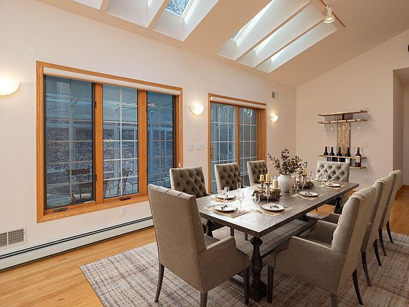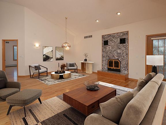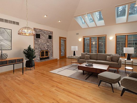 Nestled on a serene .590-acre lot with mature trees, this 3800+ sq. ft. home combines luxury, functionality, and an unbeatable location just minutes from the Mayo Clinic. Inside, the open floor plan boasts vaulted ceilings, hardwood floors, and abundant natural light, creating an inviting atmosphere. The kitchen, outfitted with premium Viking appliances, is a chef's dream and an entertainer's delight. With 5 spacious bedrooms—4 on the main level—this home offers unmatched convenience. The primary suite features a walk-in closet and ensuite bath, while two additional main-level bedrooms also include private ensuite baths for ultimate comfort. Relax by wood-burning fireplaces in both the living and family rooms or retreat to the stunning three-season solarium, where you can savor the changing seasons in peace.