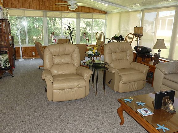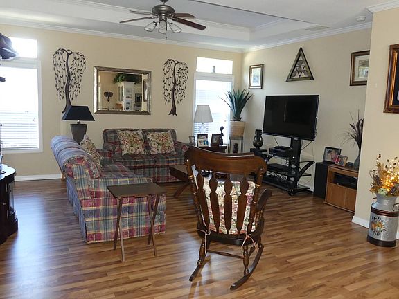 This spacious 2006 Palm Harbor home is 3 bedrooms and 2 baths. The main house is 1680 square feet and in addition there is a 375 Square foot Four Seasons Florida Room with a split AC/heat unit. There are laminate floors in the living areas and ceramic tile in the wet areas. The Florida room has Berber carpet. This is a split bedroom plan and the master bedroom has a separate retreat room. The master bath features dual vanities, a garden tub as well as a walk in shower and linen storage. Other features of this home include: tape and textured walls, separate laundry room with sink and closet, crown and baseboard molding, tray ceiling, ceiling fans, new microwave and double kitchen sink, walk in closets in all bedrooms, kitchen pantry, breakfast nook, tile backsplash and much more. Contact Cypress Lakes Sales & Information Center for more information and showing requests.