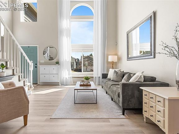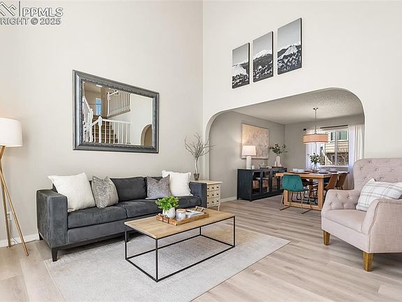 Welcome to this stunning 5-bedroom, 4-bath home with a main-level office, nestled in the highly sought-after Pinewoods neighborhood & the award-winning D20 school district. From the moment you arrive, you’ll appreciate the charm, elegance, and thoughtful updates throughout, including beautifully updated flooring on the main level, upgraded interior and exterior paint, modern lighting, and improvements that enhance both style and function. The kitchen features granite countertops, an island, all appliances, a pantry, and abundant cabinetry. Formal living & dining rooms offer elegant spaces to host, while the inviting family room impresses with soaring vaulted ceilings, expansive windows that flood the space with natural light, and a beautiful fireplace equipped for a gas insert. The main-level office is perfect for working from home or can easily serve as a sixth bedroom for added flexibility. Upstairs, the spacious primary suite boasts lovely Pikes Peak views, a walk-in closet, and a luxurious ensuite bath, complemented by two additional bedrooms and an updated full bath. The fully finished basement offers a private and versatile retreat—ideal for multi-generational living or guests—with a second family room, two additional bedrooms, a ¾ bath, and generous laundry & storage space. Step outside to enjoy the best of Colorado living in a fully fenced, professionally xeriscaped backyard featuring a stunning tiered patio, built-in gas fireplace, and raised garden beds—perfect for outdoor entertaining or peaceful relaxation. Additional highlights include central A/C, a two-car garage with built-in storage, 50-yr composite roof shingles, fiber optic internet/cable and no HOA. Tucked away in a quiet, established neighborhood within walking distance to schools and just minutes from Pine Creek Golf Course, the Shops at Briargate, Interquest dining and entertainment, and the Air Force Academy—with easy access to I-25—beautifully maintained & move-in-ready!