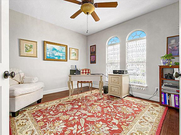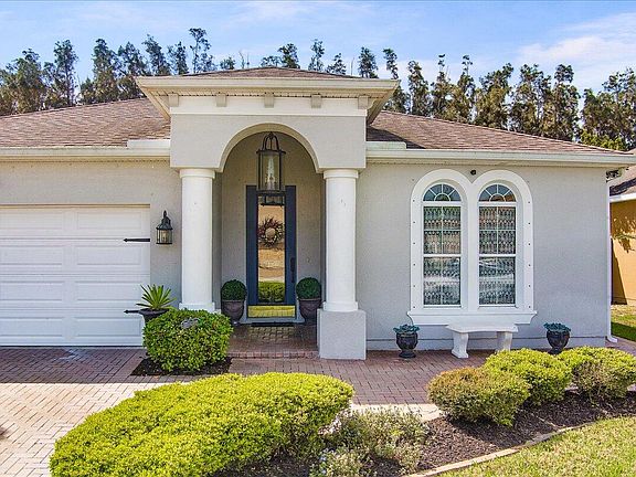 Gorgeous, move-in ready, solid poured concrete home in desirable Phillips Landing in Rockledge, FL. From the paver widened driveway & front porch through the upgraded 8'' stylish glass door, this is just the beginning of this unique open floor plan. The pocket door off the kitchen to separate 2 bedrooms & bath with handicap walk in tub/shower makes a private mother in law area. Upgraded off-white beadboard kitchen cabinets & island granite counter tops with Blanco quartz sink, new disposal & bar faucet with water filter. All stainless appliances including thermador oven & 5 burner cook top, bosch dishwasher, LG refrigerator, heavy duty Maytag washer & dryer with laundry sink. Glued down hand scraped engineered wood floors with 5 ½'' baseboards throughout. Recently remodeled master bathroom with large no-step-in shower with hex stone flooring & porcelain wall tile. Large screened in patio for relaxing, overlooking your fenced in yard. New roof to be installed by 5/5/24 w/warranty.