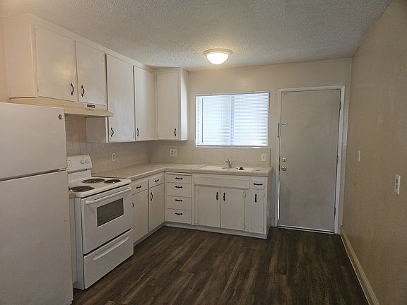 Brand new inside with fresh carpet and flooring. Large living room and kitchen. Central air. Fenced courtyard with grassy area