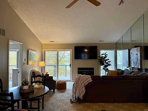Year-Round Lake Views in a Gated Golf Community! Enjoy year-round lake views from this 2BR/2BA turnkey condo with vaulted ceilings in the desirable Waters Edge Village, known for its exceptional HOA management that makes the lifestyle effortless. Bright, open living area with a fireplace and walkout to a private balcony overlooking the water. Peaceful primary suite with lake views, a walk-in closet, and an en-suite bath. Guest bedroom + full hall bath for flexibility. In-unit laundry and exterior maintenance included. Located in a gated resort community with golf, pickleball, pool, and an on-site restaurant. Minutes to Fourwinds Resort & Marina, with quick access to Indiana University. Move-in ready lake life!