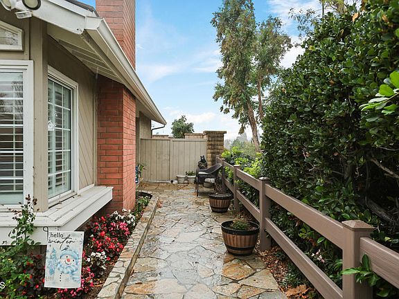Welcome home to this beautifully maintained two-story residence located in the highly desirable Country Hills community of Brea, within the award-winning Brea-Olinda Unified School District. This must-see 3-bedroom, 2.5-bathroom home is tucked away on a quiet cul-de-sac and offers approximately 2,272 sq. ft. of living space.Step inside to a light and airy living room featuring vaulted ceilings, plantation shutters and a cozy gas fireplace, creating an inviting first impression. The remodeled kitchen opens seamlessly to the family room and dining area, complete with a second fireplace--perfect for entertaining or everyday living. The kitchen boasts granite countertops, recessed lighting, white cabinetry, and ample counter and storage space.Also on the main level is a convenient half bath and a versatile bonus room that can be used as a home office, playroom, or potential 4th bedroom--bring your imagination!Upstairs, you'll find the spacious primary suite along with two additional bedrooms and a full bathroom. The primary suite features a private balcony, a remodeled en-suite bathroom with quartz countertops, dual sinks, a beautifully updated step-in shower, and a large walk-in closet. The secondary bathroom offers a convenient tub/shower combination.This home has been impeccably cared for and includes hardwood flooring, new carpet, dual-pane windows, and a brand-new air conditioning system installed in 2025. The attached two-car garage includes a dedicated laundry area.The private rear yard offers a peaceful, Zen-inspired retreat designed for low-maintenance California living. A soothing fountain sets the tone for relaxation, while mature fruit trees--including two avocado trees and a fig tree--provide natural beauty and a true farm-to-table touch. This serene outdoor sanctuary is ideal for morning meditation, casual gatherings, or unwinding beneath the California sky.Enjoy a low HOA that offers exceptional amenities including community pools and spas, tennis and basketball courts, greenbelts, and abundant guest parking nearby. Ideally located close to Birch Hills Golf Course, Brea Mall, dining, parks, schools, and transportation, this peaceful neighborhood is a rare find.Experience the best of Brea living in Country Hills--this exceptional home is truly rare and won't last long!