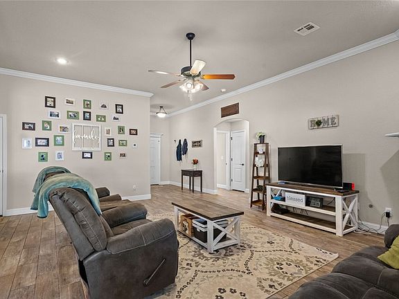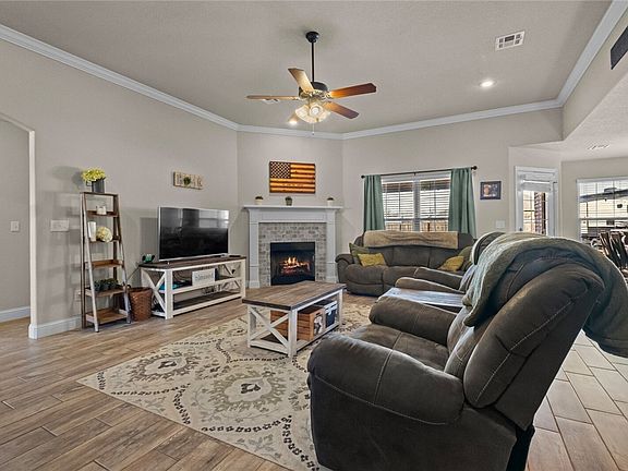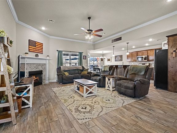 Well maintained 4-bedroom home with high ceilings & lots of natural light! Huge fully fenced backyard! Great floorplan features an open layout & split bedroom floorplan. Wood look tile flooring throughout so no carpet! High ceilings in the living room with crown molding & a gas fireplace! The kitchen is open to the living room with a large island, granite counters, stainless appliances, gas range & pantry! The dining area is a nice size with plenty of room for a large table. Large primary bedroom with a tray ceiling & lots of windows to bring in natural light. The primary bathroom has double sinks, a soaker tub, walk in shower & a huge walk-in closet! The split-bedroom floorplan gives you plenty of privacy. The 4th bedroom is great for an office if you work from home. The large backyard has a huge covered patio, privacy fence, firepit 10x16 shed & carport! Extra wide 3 car driveway with double gate to backyard! Refrigerator, washer & dryer convey! Great location on a cul-de-sac street & close to 72 & shopping!