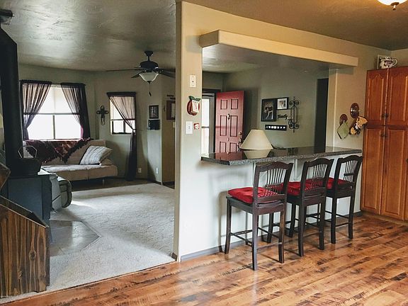 Move in ready. Cozy cabin in the woods. Towering ponderosa pines is the perfect setting for your mountain getaway. The large covered porch has so much room for entertaining. The ranch home offers an open floor plan with large breakfast bar and wood stove. Spacious eat in kitchen with plenty of cabinets and work space. Remarkable move in ready home with 3 bedrooms and full bath and inside laundry. The yard provides fenced area for kids and pets, and plenty of parking. The shed is perfect for outdoor supplies. Private feel and an excellent getaway or full time living.