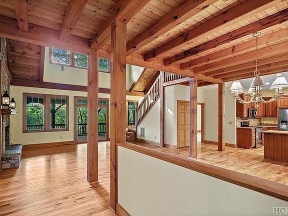 MOTIVATED SELLER!!! This home in Old Edwards Club is a Koenig masterpiece of design, craftsmanship, and natural beauty. It offers an exceptional living experience for those seeking a harmonious blend of mountain living and refined elegance. Embrace the serenity of the surroundings and the comfort of a well-crafted mountain retreat. The interior spaces are adorned with natural materials, celebrating the beauty of the great outdoors. High vaulted ceilings expose the intricate timber frame architecture, creating an open and airy feel. The heart of the home centers around a magnificent stone fireplace, perfect for cozy evenings with loved ones. The open-concept design seamlessly integrates the living, dining, and kitchen areas, promoting a sense of togetherness and easy flow for entertaining guests. The primary and secondary bedroom are located on the main floor. Each has an ensuite bathroom and walk in closets. The third bedroom is located upstairs just off the large loft area. The exterior of the home showcases a classic timber frame construction, with sturdy wooden beams meticulously interlocked to form an enduring structure. A harmonious combination of stone and wood cladding adds a touch of elegance and timelessness to the overall design. The large screen porch opens the living and primary bedroom allowing owners to enjoy the cool breeze and mountain view. Home has a two-car detached garage and plenty of extra parking. Home is being sold with lot 220, allowing new owners the maintain a great wood private home. Old Edwards Club is Tom Jackson designed 18-hole golf course with clubhouse, grill room, heated mineral pool, Har-Tru tennis courts and 24/7 fitness room access. GlenCove, is a private community with its focus on wellness of the body and soul. There are miles of hiking trails, a walkable 12-hole par three lighted course, short practice course, and organic garden and farm.