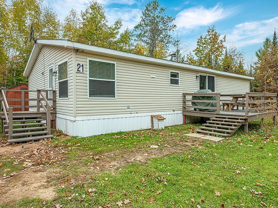 Birchwood Estates Home - This spacious three bedroom, two bath manufactured 2005 home is in the market for new owners. Though no real estate is being sold, this home could be your AFFORDABLE Northwoods getaway. Up to 20 year fixed loan lending available! The recently renovated kitchen and dining spaces are open to the living room making for a great flow throughout the home. Updates include flooring, appliances, and water heater. Chilly nights dwindle away with the wood burning fireplace. This home also has forced air heat with a central air unit for our warmer summer nights. There is a detached two car garage with heated workshop space and a shed for overflow storage. Located DIRECTLY on snowmobile/ATV trails and within MINUTES of a Chain of Lakes boat landing, what's not to love?! All buildings are included with the sale; lot rental is $440/month and covers water, sewer, trash pickup and road plowing. NO VRBO, AirBNB, subletting, or month-to-month.