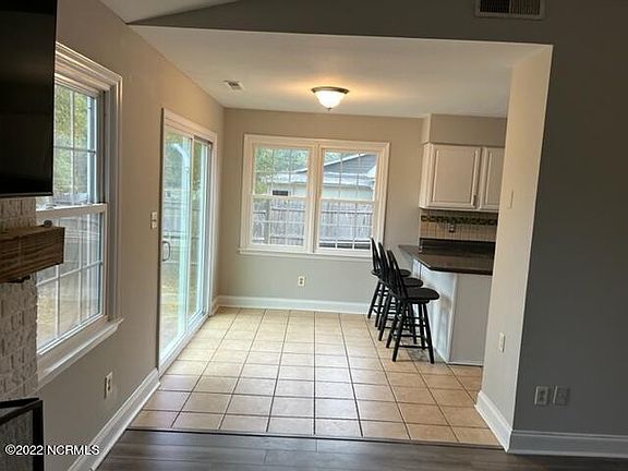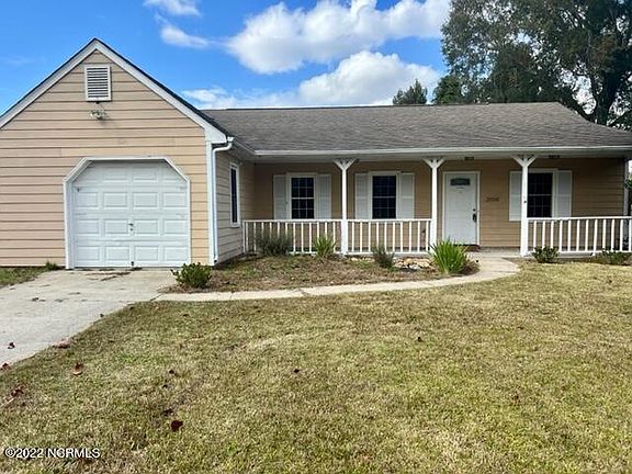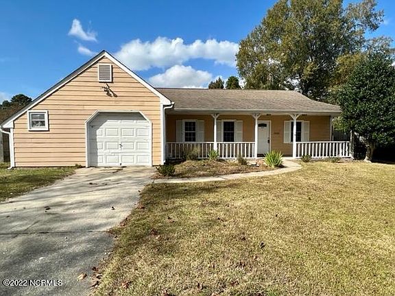 Minutes to base and only County taxes. This home is located in Hunters Creek, right outside the main gate of Camp Lejeune. This move in ready home just got an interior refresh with new paint, and painted white cabinetry. This single story home features 3 bedrooms and 2 full baths. Spacious living room with a wood burning fireplace and vinyl plank flooring. The kitchen has freshly painted white cabinetry, great counter space and all appliances. The master suite is spacious with tons of natural light and en-suite bath. Guest rooms are also spacious with plenty of closet space. laundry/utility room is located on your way in from the garage (perfect place to clean up pets).