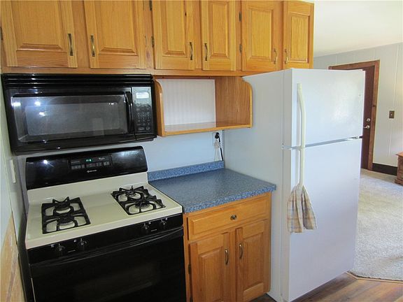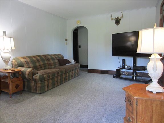 2 bedroom / 1 bath country ranch home! Kitchen boasts custom made cabinets with tons of storage & handy breakfast bar, includes appliances and opens to dining / living room. New replacement windows throughout! New front door in '21, New 200 amp electric service, New roof and gutters in '21! Garage & shed w/ new vinyl siding & roof in '21! Big, private back yard goes down to Brinningstool creek and is only 1 mile to Iroquois National Wildlife Refuge and kayaking. Square Footage differs from tax records and is 721 square feet as measured by the owner. Owner reports that there are 2 bedrooms not 3 and that home was built in 1960. Tax data reported is for another home that was part of this property and was torn down according to the owner. Back on the market because financing fell through. Just hooked up to public water!
