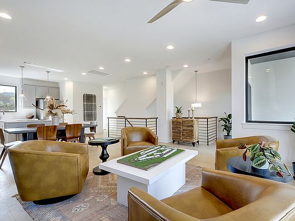The L plan, located in building 12, is a gorgeous 2-story villa. There are two guest bedrooms and a guest bath downstairs, while the upstairs has the primary bedroom, living, kitchen, and dining. The home is beautifully appointed with quartz countertops, Samsung stainless steel appliances, painted shaker-style cabinetry, and 10-ft ceilings + European oak flooring in the living areas.