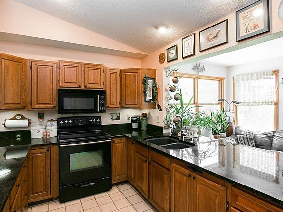 4.71 wooded acres with hundreds of mature trees (120 walnut, 9 fruit trees) and on a hard surface road. Gorgeous ranch home with vaulted ceilings, walk out lower level, 4 seasons room, 2-stall attached garage, 1st floor laundry, and extra exercise or computer room. Newer water softener system. Additional 24x32 pole building. Already set-up for horses with automatic water and existing shelter (current owners have 4 horses). Tremendous curb appeal with circle drive and amazing views!