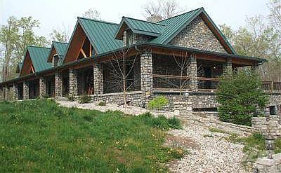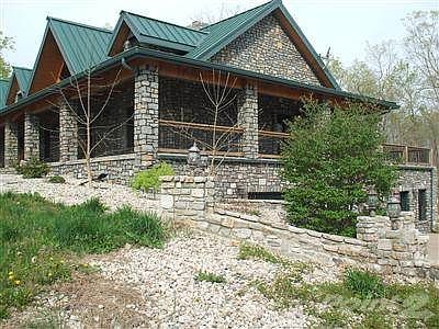 WOW! Incredibly gorgeous like new home in the country just minutes from Lawrenceburg. Charming and breathtaking. Built on 10.4 acres, this home has it all. The 15' wrap-a-round porch has over 1500 square feet of space. The exterior is cut fieldstone with black mortar which is absolutely beautiful. The open floor plan for the interior is attractively designed using extensive woodwork including cedar posts, poplar T & G wall boards, 4 x 6 oak pegged trusses, 4 large trapezoid windows in main rooms, white pine 1.5 x 6 T & G, three fireplaces, and large sunroom adjoining patio. Beautiful kitchen includes hickory cabinets with granite countertops. Oak hardwood flooring is random 2 and 4 with tile and slate throughout. Beauty Salon in basement. HVAC has 7 tons of geo thermal heat. 40' x 60' detached garage with 5 bay 12' overhead doors plus 2 car detached garage on main level with 24' x 62' garage in basement. Standing seam metal roof. 900' long concrete driveway. Brokered And Advertised By: Peach Real Estate Listing Agent: Al Peach