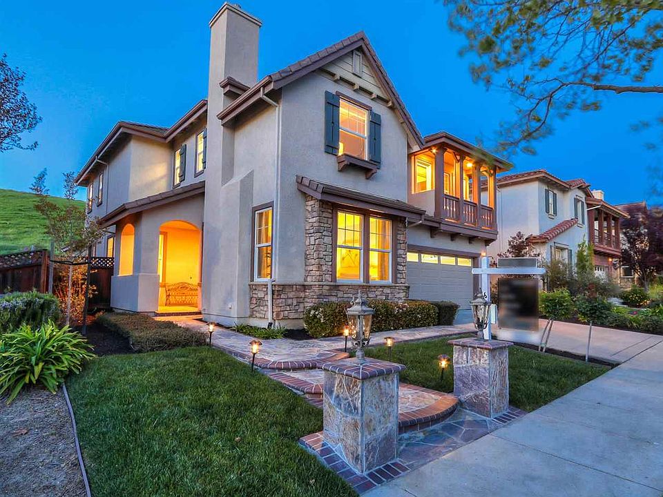Luxury living in sought-after Windemere neighborhood with stunning open space view in backyard. New Paint interior and exterior. Highly upgraded, granite tile entry, spacious kitchen and family room combo. Gourmet kitchen features maple cabinetry with new paint, granite counter and full backsplash, GE Profile stainless steel appliances, built-in refrigerator, water filtration system for entire house. Solid hardwood floor throughout downstairs! One large bedroom and a bath downstairs. Upgraded patterned carpet upstairs! Rare found dual decks upstairs, panoramic view in master bedroom, another deck with street. Updated master bath, marble countertop &tiles, two separate vanity sink, jetted tub. Large walk-in closet. Impressive resort-like backyard, built-in BBQ island, firepit & 2 gazebos, high-end Cal stone paver. Conveniently located in heart of Windemere, walking distance to top rated Elementary, middle school, sports Park. Minutes drive to Dougherty High, Freeway,BART, outlets.