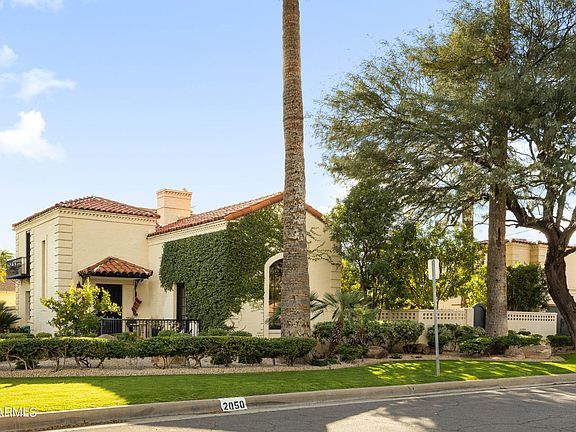 This 1933 Spanish property holds original architectural details and is located on one of the most prestigious blocks in Encanto Palmcroft. Set back from the street on a corner lot, enter the two story living foyer with 18' vaulted ceilings, exposed beams, original ironwork and a gas fireplace. The connected dining room has with French Door access to the backyard. The updated kitchen features custom cabinetry, black marbled quartz countertops, and matching appliances. The privately hedged backyard welcomes entertaining with a heated pool, built-in barbecue and covered lounge areas. Above the detached two car garage enjoy guest quarters with a full bathroom, bedroom and kitchenette. This gem won't last long!