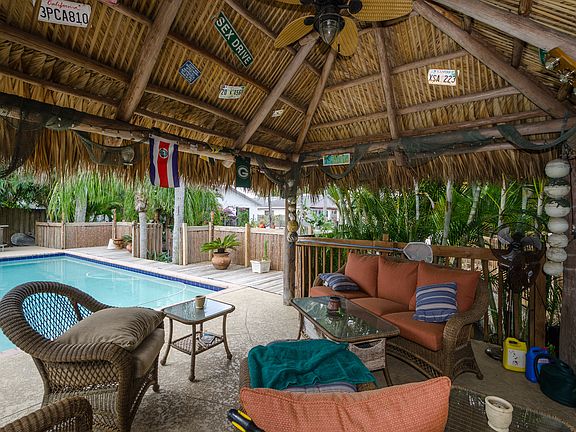 Boater's or Fisherman's Delight! This Ocean access/pool/spa home has the WOW factor. The views from the living room, kitchen and master bedroom, will make you think you're in Key West. Relax under the tropical Tiki hut or entertain guests. Very spacious and open living/dining with high ceilings. Renovated kitchen with S/S appliances & granite countertops. Remodeled bathrooms, split bed, custom closet in Master, accordion shutters, circular driveway, 1 CG. MUST BE SEEN IN PERSON TO APPRECIATE.