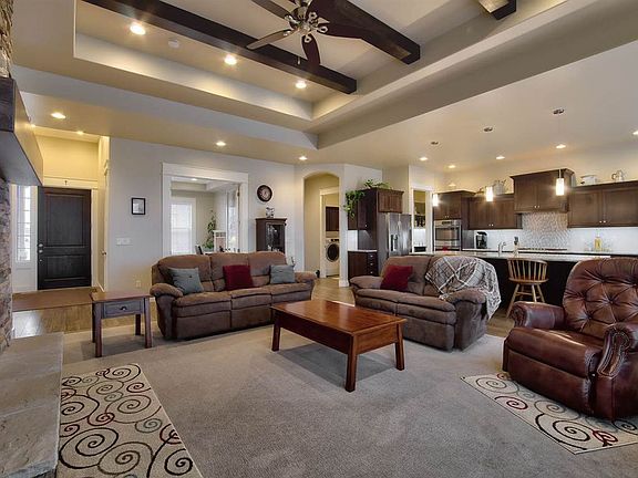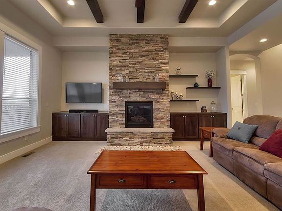 Exceptionally built single level w/ RV bay~BARELY lived in! 3 bedrooms (all w/ designated baths) plus a bright office gives this open floorplan terrific "flow". Large family room w/ beautiful beams, floor to ceiling stone fireplace, built-ins & tons of windows bring the outside in. Dream kitchen w/ huge island, sweet pantry, top of the line appliances, counterspace & storage galore. Enjoy panoramic views of our valley from your large covered east facing patio w/ no direct rear neighbors!Great Kuna location!