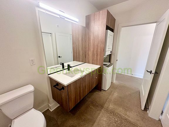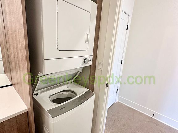Sleek, modern one-bedroom condo in nearly new building on a popular stretch of N Killingsworth. Garbage, water and sewer included in rent! First floor so you don't have to climb any stairs. High ceilings. Polished concrete floors. Modern, industrial look and feel. Energy efficient: Heating and cooling with minisplit units mounted high on the walls. Hot water heater is tankless (on demand, never runs out of hot water.) Stacked washer and dryer in your unit. Large walk-in shower with marble walls and awesome shower head. Kitchen features a diswasher, gas range, microwave and refrigerator. Move-in Costs: First month's rent plus a refundable security deposit that is slightly less than rent. Utilities: Owner pays for garbage, water and sewer. Tenants to place other utilities (electric, gas and Internet) in their names, effective on the move in date. Yard Care: Landscaping is included in rent. Lease: 12 months with an option to renew if rent is paid on time. Pet Policy: Pets allowed with owner approval. 1 or 2 pets permitted with $30 per month pet rent (per pet). Green Keys Restricted Breeds: Pit bulls (American Pit Bull Terrier, American Staffordshire Terrier, Staffordshire Terrier, and American Bulldog); German Shepherds; Akitas; Rottweilers; Boxers; Doberman Pinschers; Mastiff Breed; Malamutes. When full grown, any dog should not be more than 45 pounds. No smoking. Parking: Street parking only. Next Steps: 1. Click on Our Listings and then click on the blue Video Tour button under 2050 N Killingsworth. An in-person tour is required prior to application. Screening criteria: minimum credit score of 650; minimum household monthly income of 2.5 time rent. Managed by Green Keys Property Management LLC. Application fee: $45 per adult (18+) that will live there. Move-in costs: First month's rent plus security deposit